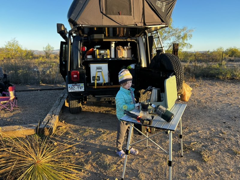 This 12V fridge is the centerpiece of the Jeep's kitchen setup. We can usually keep …