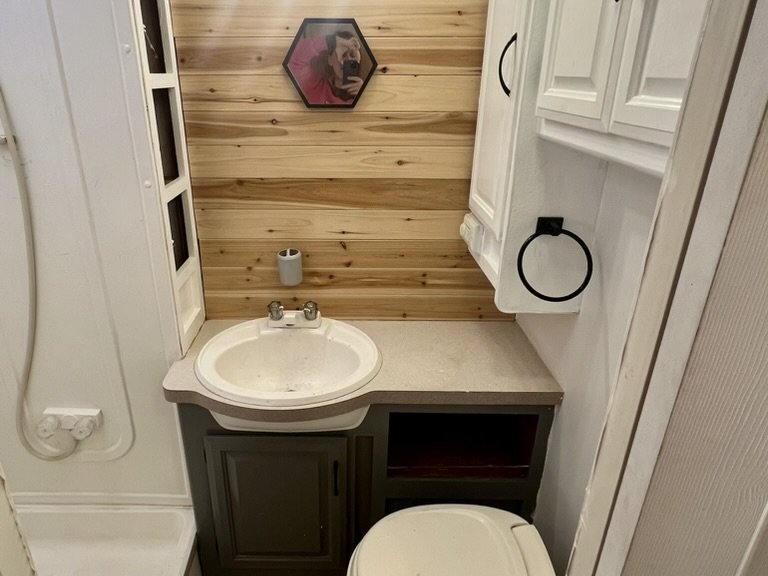 We used a kit like this to paint the shower and sinks in our RV …